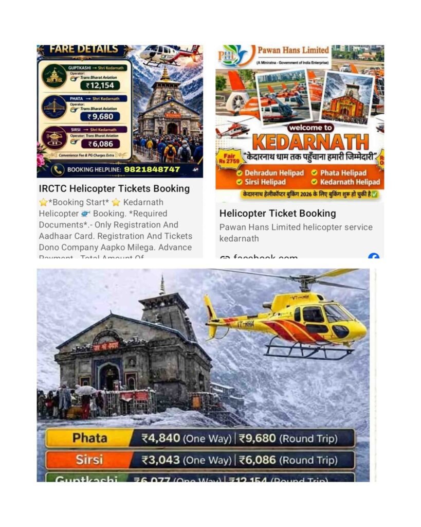 हेलीकॉप्टर टिकट के नाम पर ठगी करने वाली 34 संदिग्ध वेबसाइट्स को भी रिपोर्ट कर बंद कराया गया है। पुलिस ने श्रद्धालुओं से अपील की है कि वे केवल आधिकारिक वेबसाइट के माध्यम से ही बुकिंग करें और किसी भी अनजान लिंक या सोशल मीडिया विज्ञापन के झांसे में न आएं।