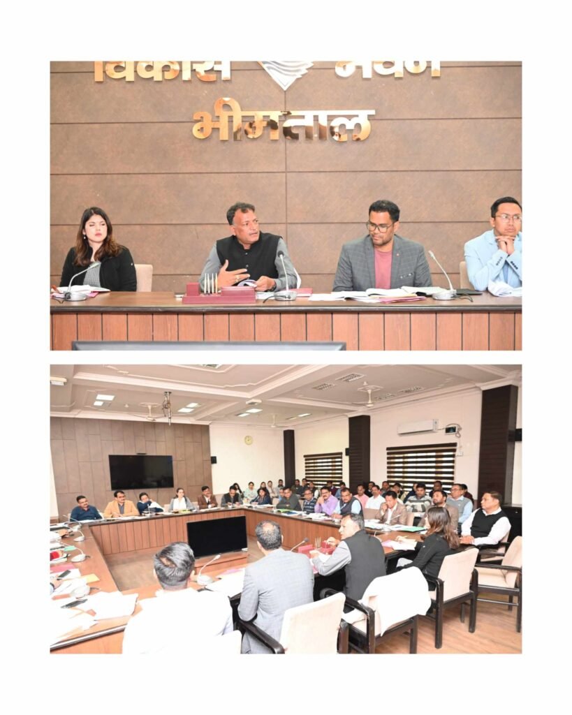 नैनीताल।सरोवर नगरी नैनीताल से दूर विकास भवन भीमताल सभागार में मुख्य विकास अधिकारी अरविंद कुमार पाण्डे ने वित्तीय वर्ष 2025-26 में विभिन्न विभागों द्वारा जिला, राज्य, केंद्र एवं बाह्य सहायतित योजनाओं के अंतर्गत प्राप्त धनराशि से किए गए विकास कार्यों तथा बीस सूत्रीय कार्यक्रम की प्रगति की समीक्षा की।