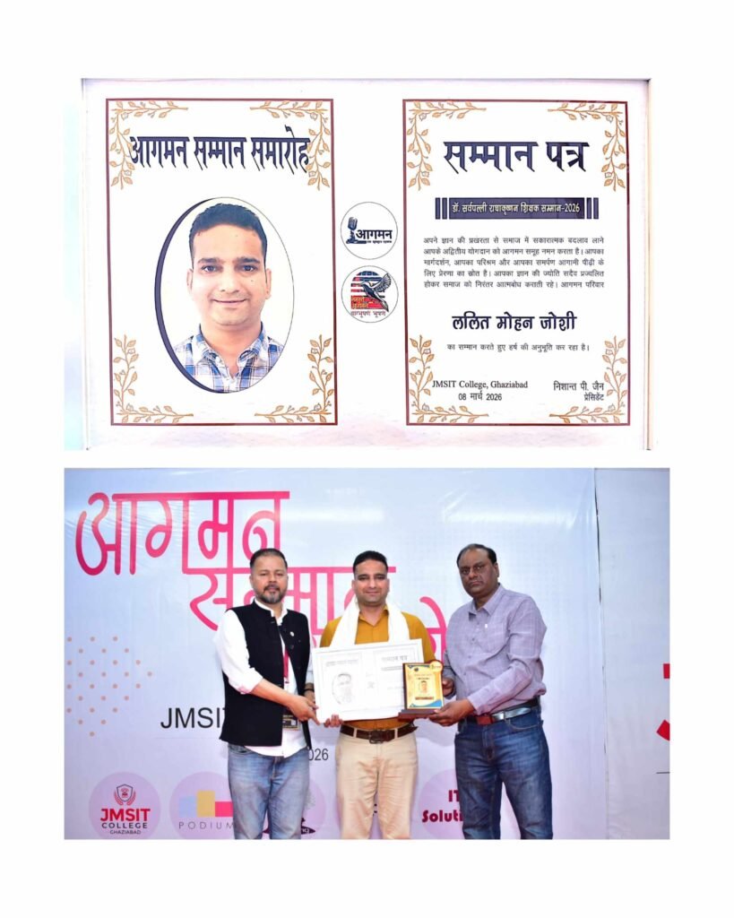 8 मार्च को गाजियाबाद में आयोजित इस सम्मान समारोह में सितारगंज निवासी और वर्तमान में जीआरडी आईएमटी देहरादून में कार्यरत ललित मोहन जोशी को उनके शैक्षणिक और शोध कार्यों के लिए यह प्रतिष्ठित सम्मान प्रदान किया गया।