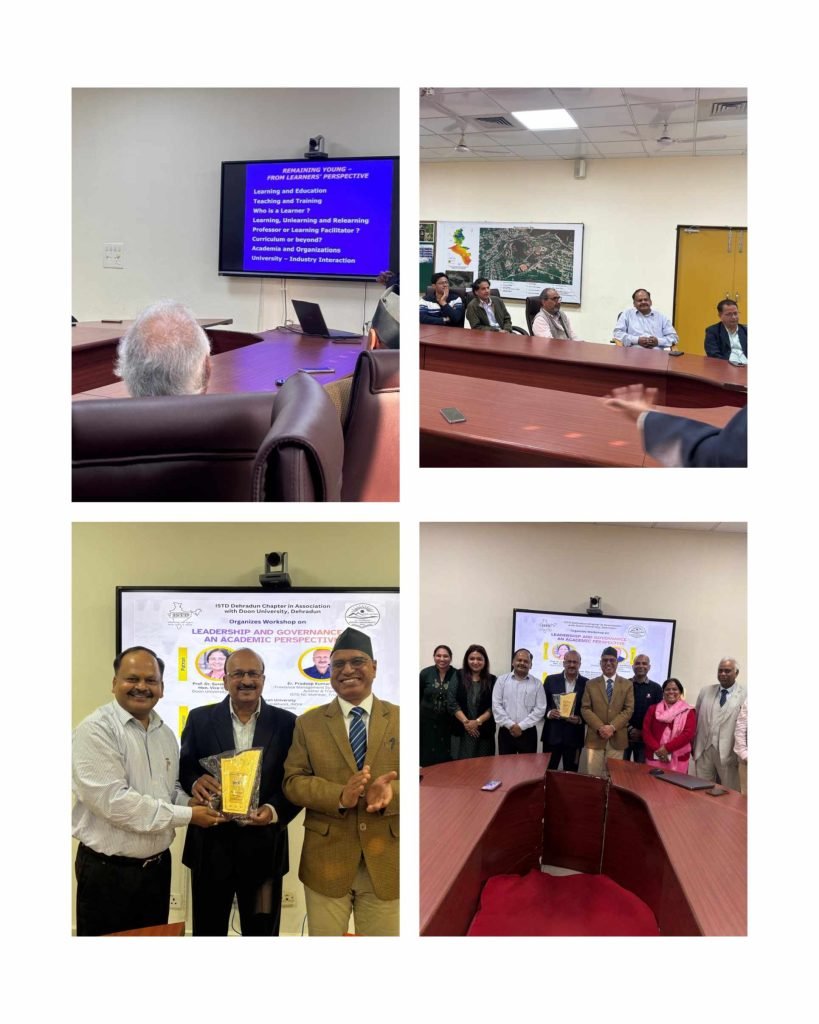 देहरादून।दून विश्वविद्यालय के आंतरिक गुणवत्ता प्रकोष्ठ द्वारा आयोजित कार्यशाला में इंडियन सोसाइटी फॉर ट्रेनिंग एंड डेवलपमेंट के नेशनल काउंसिल सदस्य इंजीनियर प्रदीप कुमार माधवन ने कहा कि शिक्षा के माध्यम से उत्कृष्ट बुद्धिजीवी समाज का सृजन होता है और इस प्रक्रिया में शिक्षक एवं शिक्षण संस्थानों से जुड़े प्रतिनिधियों की महत्वपूर्ण भूमिका होती है। श्री माधवन ने कहा कि सीखने की कोई उम्र नहीं होती और इसके लिए किसी प्रकार के औपचारिक संरचनात्मक ढाँचे की भी आवश्यकता नहीं होती है। हम दैनिक जीवन में अपने वातावरण से, समाज में होने वाले व्यवहार से भी काफी चीजें सीखते हैं और कई बार इस प्रकार की शिक्षा जीवन को सफलता के मार्ग की ओर ले जाने में सहायक होती है।