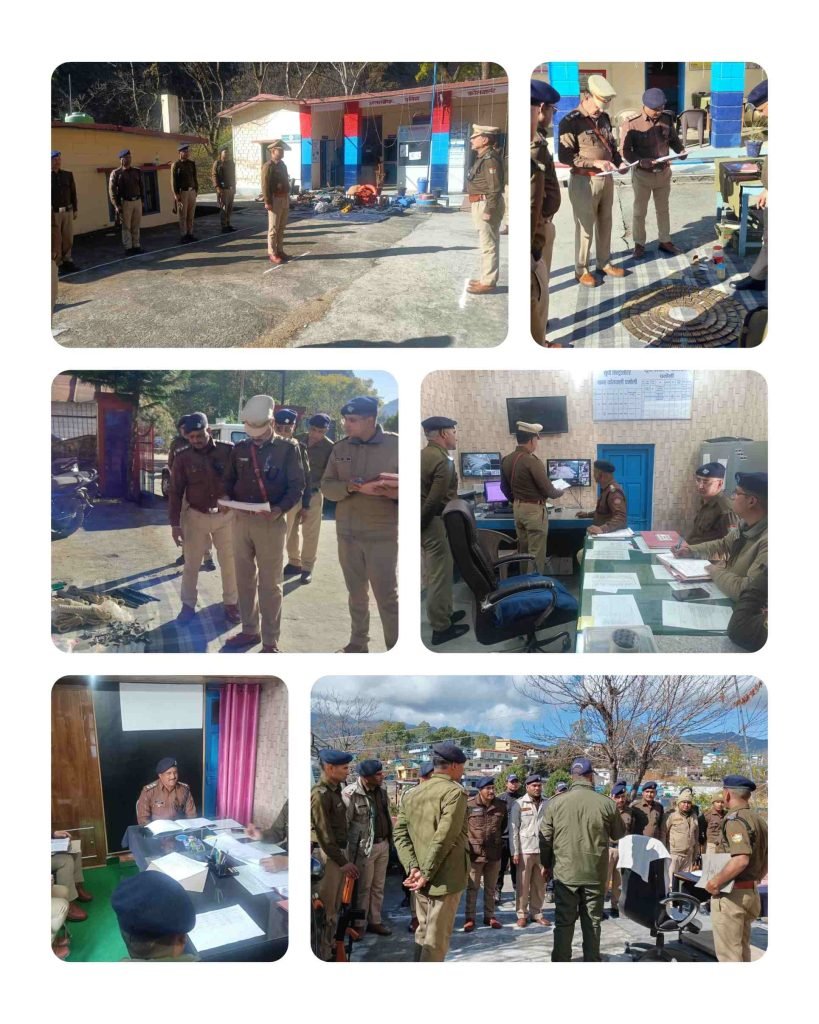 इसी क्रम में पुलिस उपाधीक्षक चमोली द्वारा कोतवाली चमोली का निरीक्षण किया गया। थाना परिसर, बैरक एवं आवासीय भवनों का भ्रमण कर आवश्यक दिशा-निर्देश दिए गए। थाना कार्यालय के अभिलेखों का गहन अवलोकन कर उन्हें अद्यावधिक व सुव्यवस्थित रखने के निर्देश दिए गए, जिससे थाना की कार्यप्रणाली और अधिक प्रभावी बन सके।