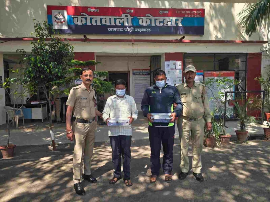 वरिष्ठ पुलिस अधीक्षक सर्वेश पंवार के निर्देश पर जनपद में नशे के कारोबार के खिलाफ चलाए जा रहे अभियान के तहत यह कार्रवाई की गई। अपर पुलिस अधीक्षक कोटद्वार मनोज कुमार ठाकुर एवं क्षेत्राधिकारी निहारिका सेमवाल के निर्देशन में कोतवाली कोटद्वार और सीआईयू टीम ने बेल रोड के पास चेकिंग के दौरान दलजीत सिंह बिष्ट और विजय सिंह को गिरफ्तार किया।